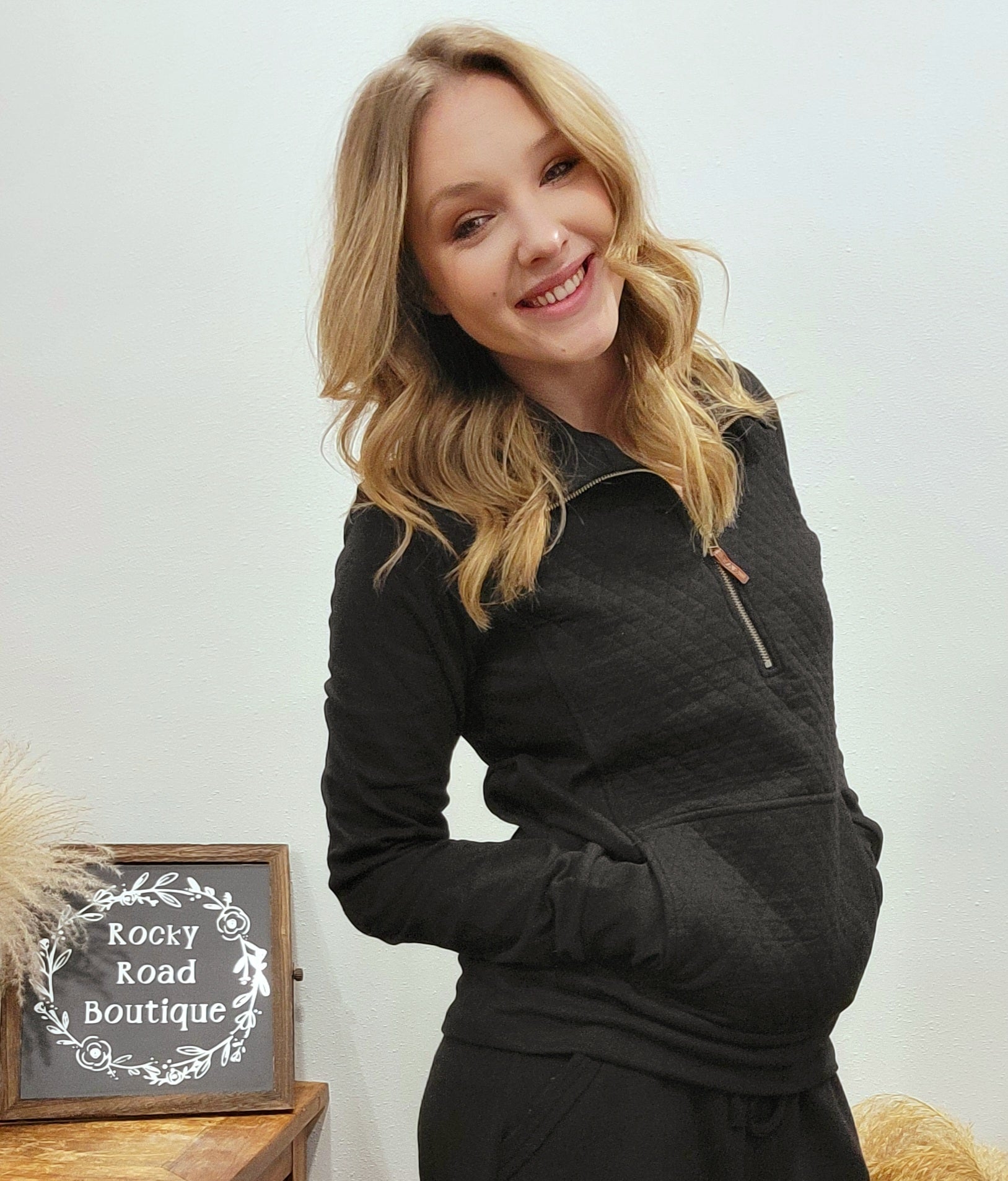 The Ampersand Avenue Quilted HalfZip in Harvest Moon is a versatile and stylish addition to your wardrobe. With its quilted design, this half-zip provides warmth and comfort while still maintaining a sleek and modern look. Perfect for any season, this top is a must-have for any fashion-forward individual.