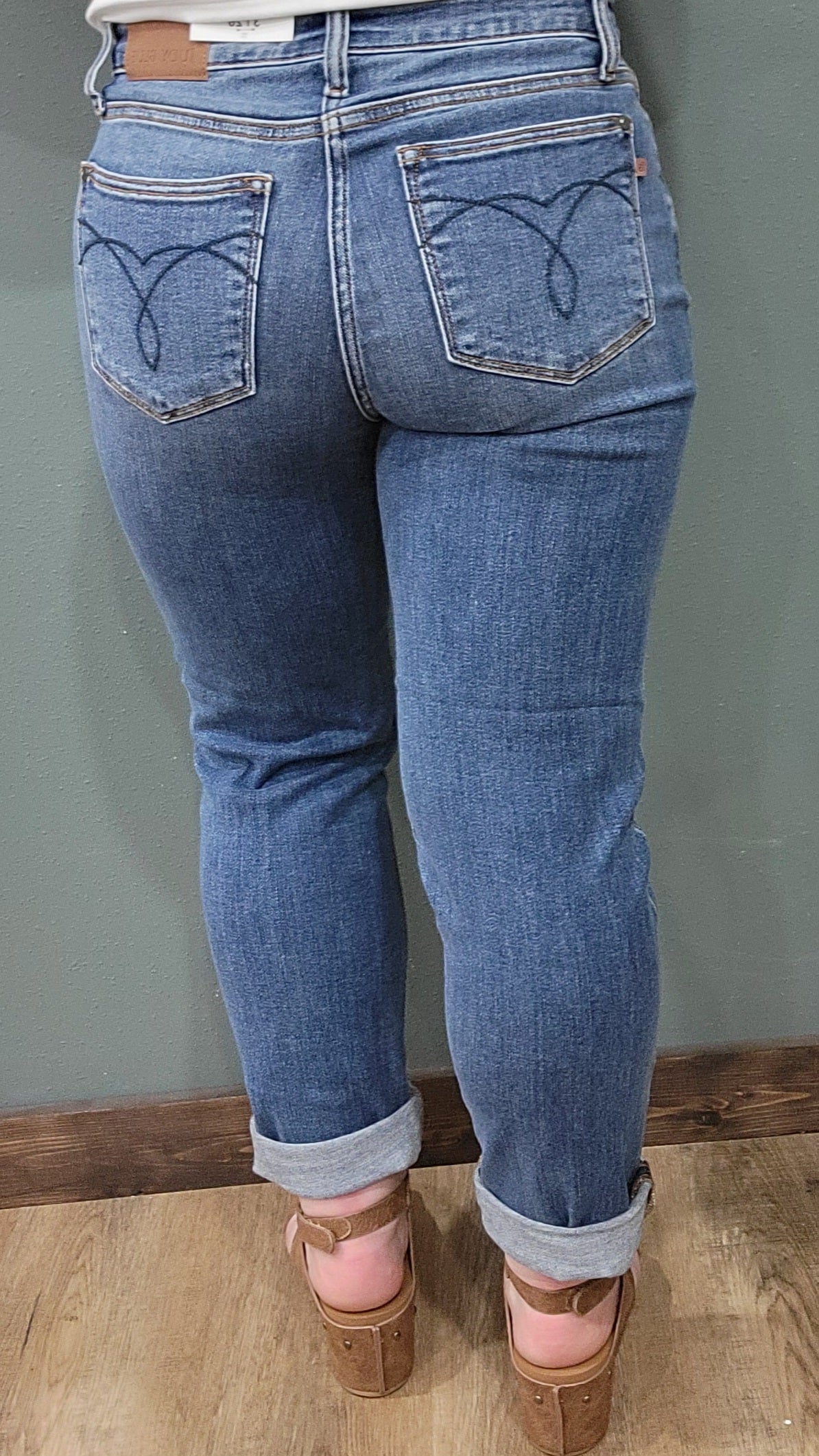 Upgrade your denim game with the Judy Blue Mid-Rise Boyfriend Jean. Crafted with a mid-rise fit and cuffed hems, these jeans provide a comfortable yet stylish look. Made with high-quality denim, they offer both durability and comfort. Elevate your wardrobe with these on-trend jeans.