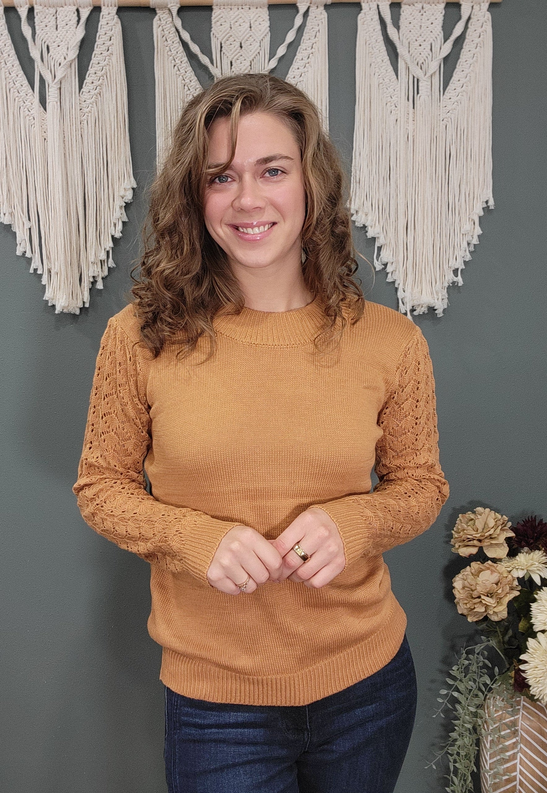 This N Touch Mustard Knit Sweater features detailed knit sleeves for a unique and stylish touch. Made of soft and cozy fabric, it offers both comfort and style. Perfect for any occasion, this sweater is a must-have addition to any wardrobe.